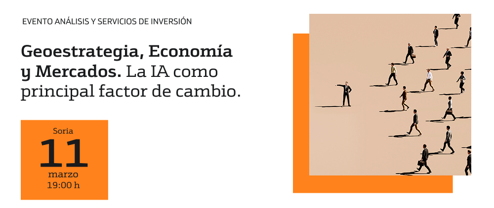 Ya puedes registrarte para asistir al Evento Bankinter de Análisis y Servicios de Inversión en Soria, que tendrá lugar el 11 de marzo a las 19:00h. en el Hotel Convento de San Francisco, C/ Nicolás Rabal, 19 - Soria.